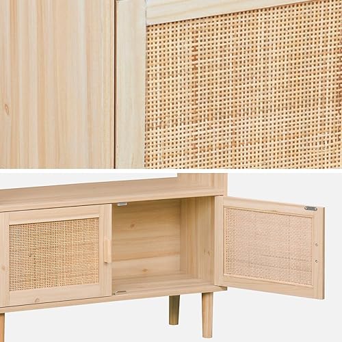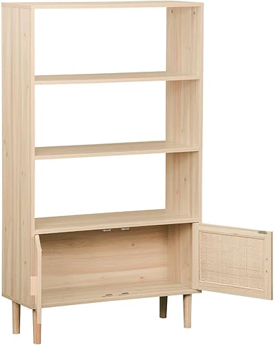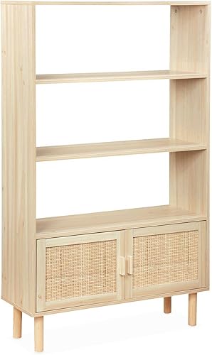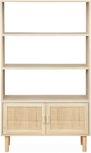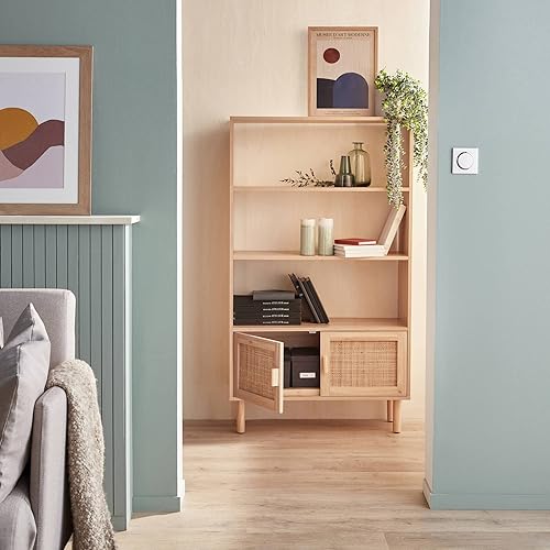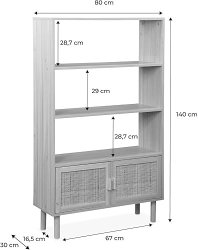 Alice's Home - Étagère bibliothèque décor Bois et cannage - Camargue - 3 Niveaux. 2 Portes