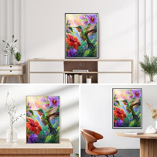 DPHERO 5D Colibri Diamond Painting Kits, DIY Fleurs Colorées Art du Diamant Painting Kit Complet, Oiseaux Broderie Kits de Peinture sur Diamant Point de Croix Painting pour Adultes Débutants 30x40cm