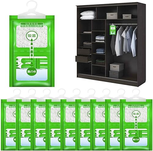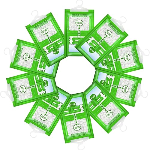 Lot de 10 sacs déshumidificateurs à suspendre pour placard, absorbeur d'humidité, paquets anti-humidité, éliminateur d'odeurs de placard compact pour la maison et la cuisine