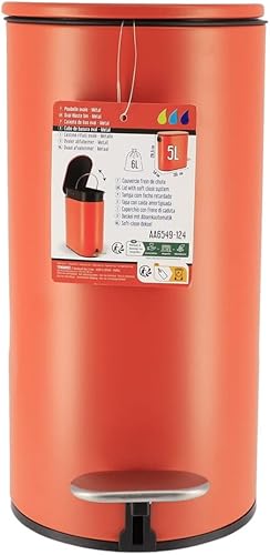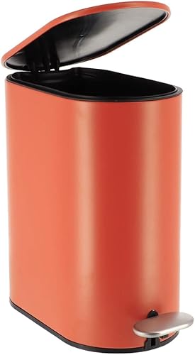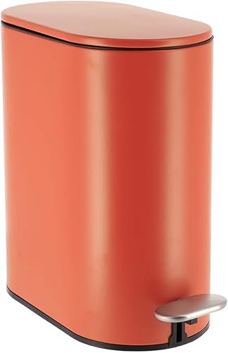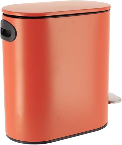 TENDANCE Poubelle à pédale ovale 5L en métal Terre de Sienne avec couvercle frein de chute