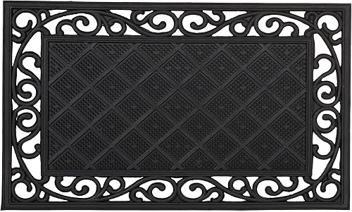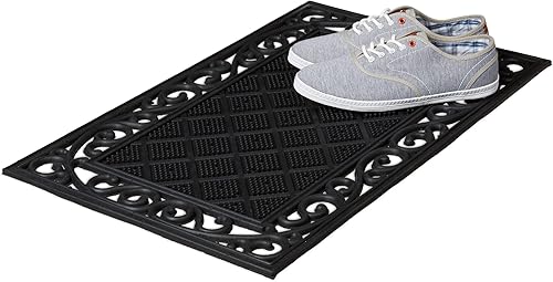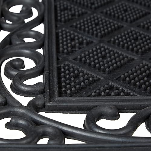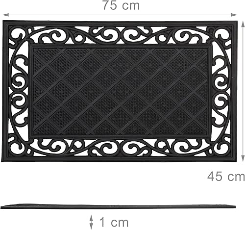 Relaxdays Paillasson 75x45 cm tapis de sol antidérapant caoutchouc rectangle résistant aux intempéries motifs fleurs, noir, 80 x 150 cm