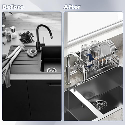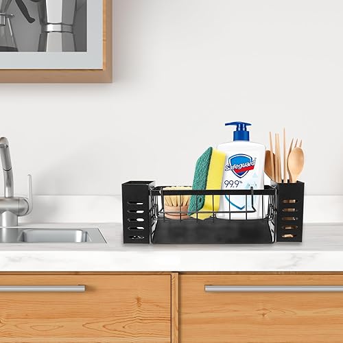 Auauraintt Porte-éponge pour évier de Cuisine, avec bac de vidange Automatique,Porte-Serviettes Amovible et boîte de Rangement pour brosses à Vaisselle,Organisateur pour Cuisine et Salle de Bain