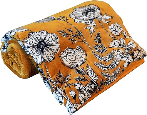 Sud Etoffe - Edredon Velours Fleuri avec Garniture Jaune Curry 80x200 cm