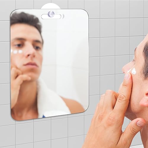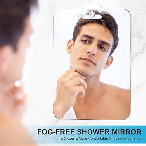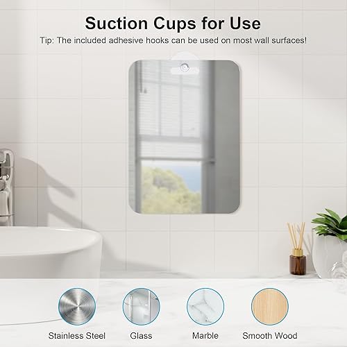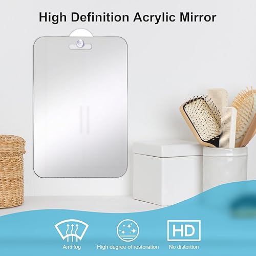 MICHIHOMIE Miroir de Douche Anti Buée, 25cm x 18cm Miroir Rasage avec Ventouse, Petit Miroir Incassable en Acrylique pour Salle de Bain, Voyage, 2 Crochets Adhésifs Inclus (Rectangulaire)