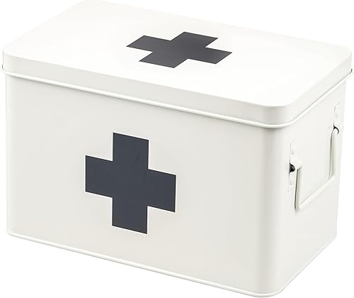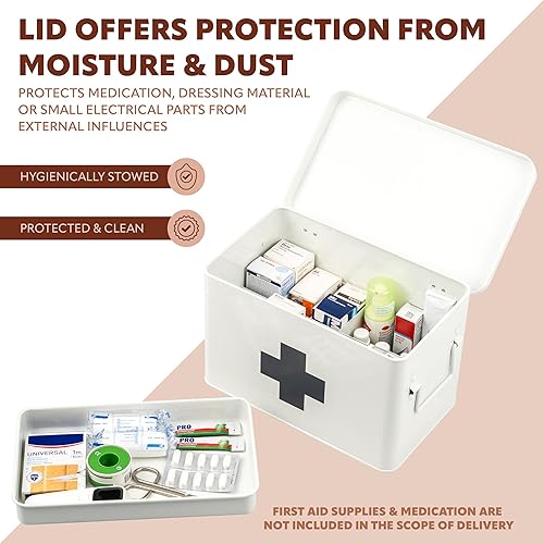 eluno Grande boîte à pharmacie pour ranger les pansements, la médecine et les médicaments, avec plateau amovible et 5 compartiments inférieurs spacieux pour médicaments, boîte à pharmacie en métal
