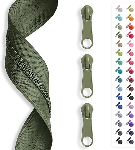 Slantastoffe Fermeture Éclair 5 m sans Fin, Spirale 3 mm + 15 Curseur/Fermeture Éclair 32 Couleurs au mètre