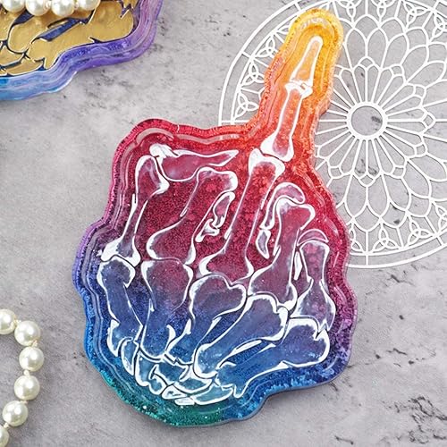 FineInno Moule en Silicone Résine époxy Skeleton Hand Tray Resin Mold Bricolage Plateau Decoratif Moulle Plat Bijoux Moule Main Squelette Moulage Coaster Moules Faire Bijoux
