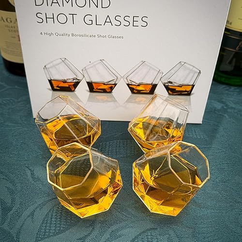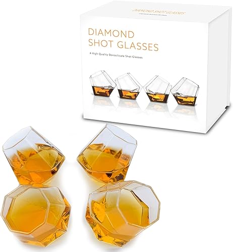 Verres à liqueur insolites, verres en diamant, set de 4, verre à liqueur amusant, emballage cadeau design, Colorless (Clear)