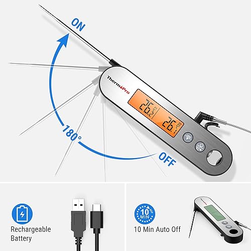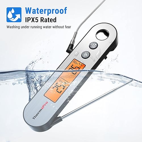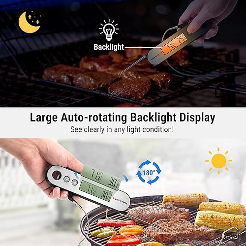 ThermoPro TP610 Thermometre Cuisine à Lecture Instantanée à Deux Sondes, Thermomètre Alimentaire pour Griller, Cuison, Four, Thermometre Patisserie Étanche avec Alarme et Ecran à Rotation Automatique
