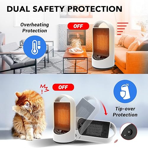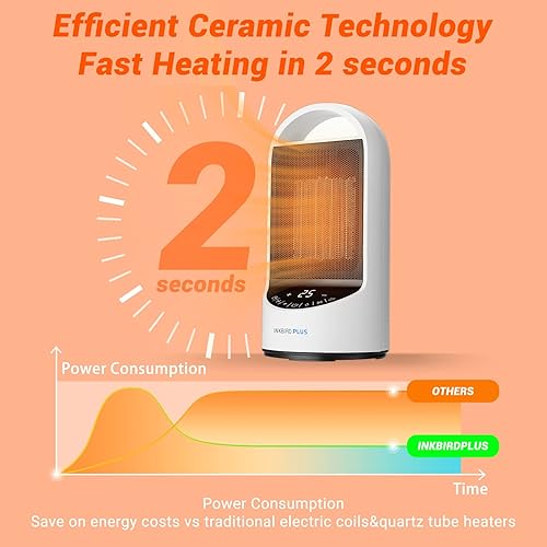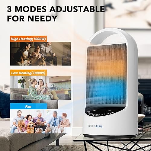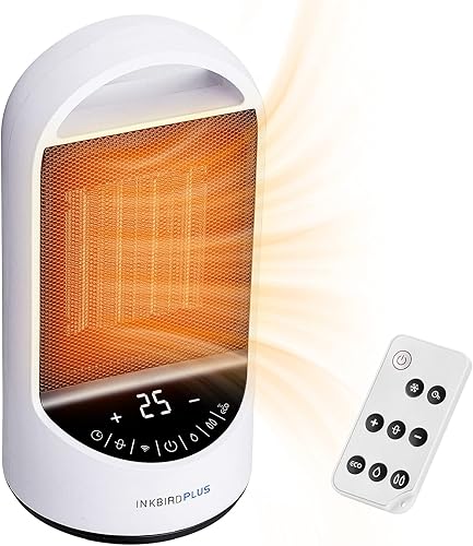INKBIRDPLUS Chauffage d'appoint, Radiateur Soufflant en Céramique avec Télécommande, Écran LED, 3 Modes, 24H Minuterie, Protection Multiple pour Chambre, Salon, Bureau