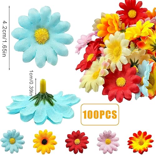 100 Pièces Fleurs Artificielles, 4cm Fleurs Artificielles Deco, Marguerite Fleur Artificielle, Fausse Fleur, Fleur Artificielle Deco Convient pour DIY Décoration Guirlande Salon Mariage (Couleur)
