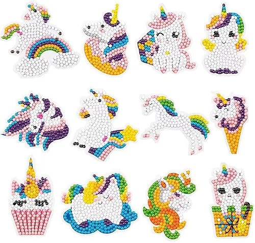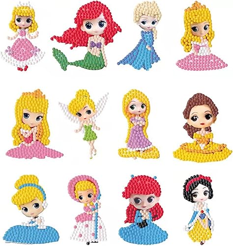 MsTeco Diamond Painting Enfant, 12 Pièces Stickers Diamond Painting Diamond Painting Kit Enfant DIY Princesse Peinture Diamant Autocollant pour Enfants et Adultes Débutants