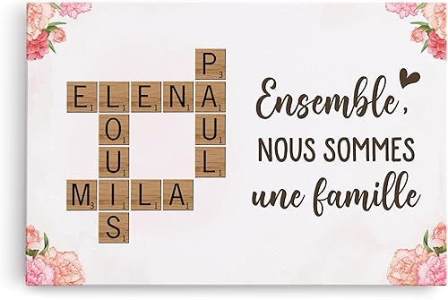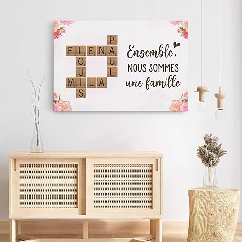 Cadeau Plus Toile Personnalisée - Ensemble Nous Formons Une Famille - Toile de Fond Personnalisable, Toile personnalisée avec prenom, Cadre Scrabble Famille personnalisé (Modèle #1)
