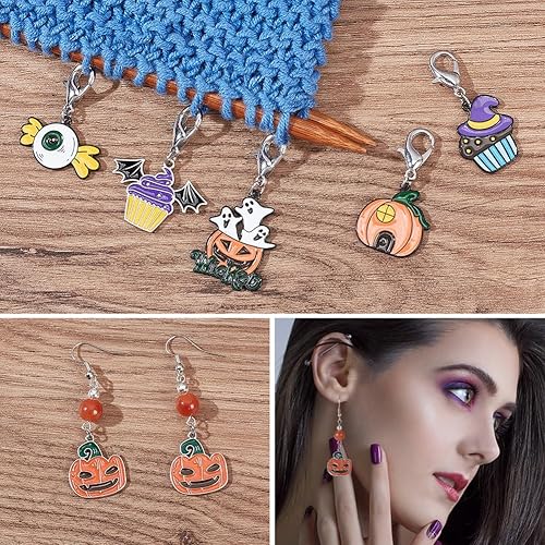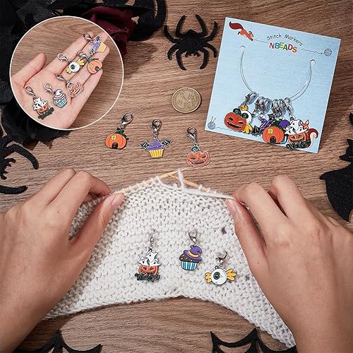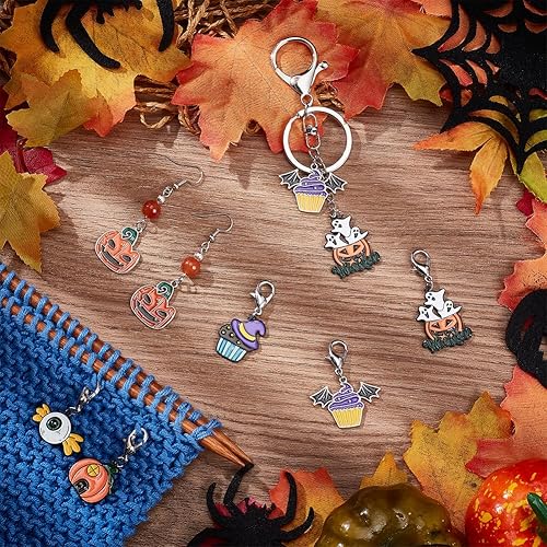 nbeads 24 Marqueurs de Point sur Le Thème d'halloween, Crochet en Alliage D'Émail Breloques Fermoirs à Griffes de Homard Crochet de Verrouillage pour Tricot Tissage Couture Fabrication de Bijoux