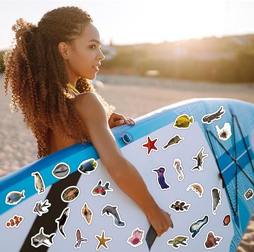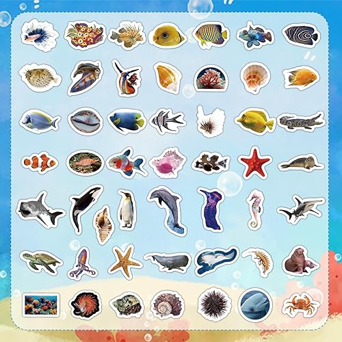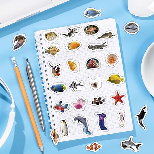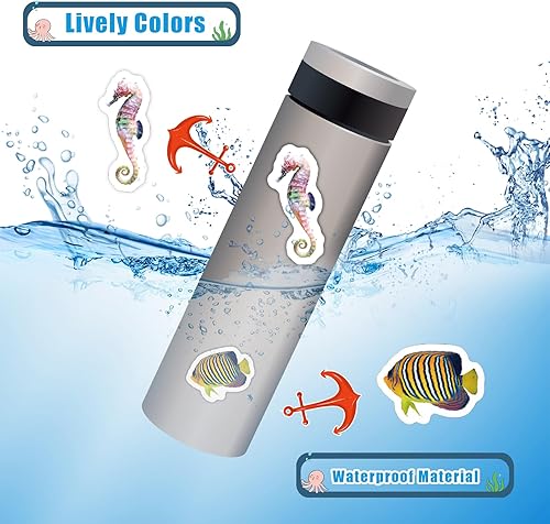 50pcs Autocollants Réalistes d'Animaux Marins, Colorés Poissons Tropicaux Dauphins Requins Imperméables Cadeaux de Fête Sous la Mer pour Enfants Adultes Bouteille d'Eau Ordinateur Portable