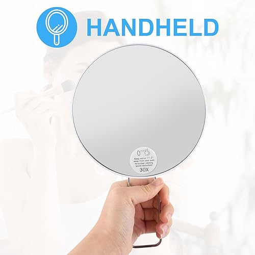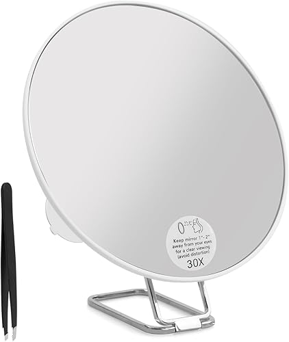 Amexo Miroir Grossissant 30X, 6 Pouces avec Grossissemen, 3 Ventouses et Support Réglable à 360° pour Montage à la Main sur Table et au Mur Miroir de Voyage Compact avec Pince à épiler