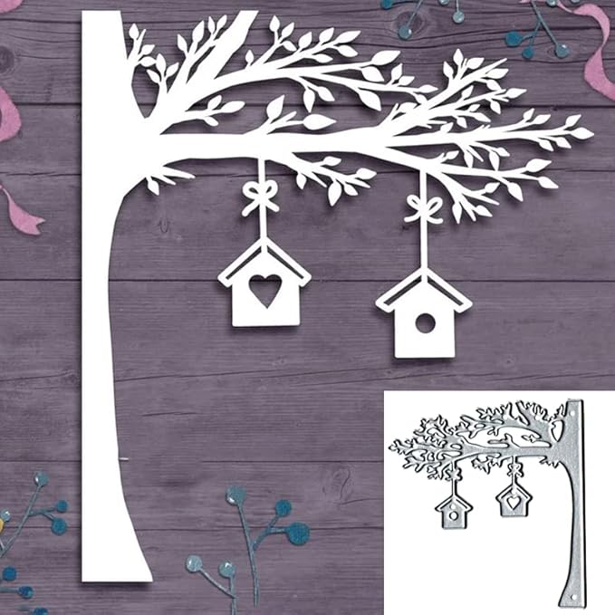 Matrices de découpe en métal en forme d'arbre de maison en forme de cœur, pour le gaufrage, la fabrication de cartes, les étiquettes de livre, les formes décoratives en papier, le scrapbooking