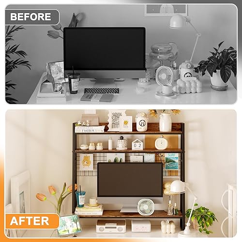 YGYQZ Bibliothèque de bureau à 2 niveaux pour écran d'ordinateur, clapier de bureau en bois, étagère de rangement pour bureau, maison, dortoir