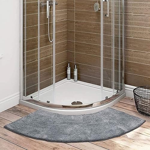 DASJD Tapis de Douche Incurvé, 45x100cm Antidérapant Tapis Douche Angle en Microfibre, Absorbant Tapis de Douche Arrondi, Tapis de Bain Incurvé pour Douche ou Baignoire, Lavable en Machine