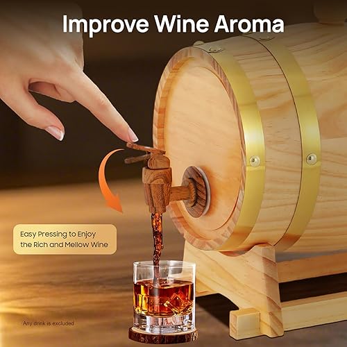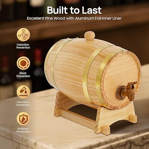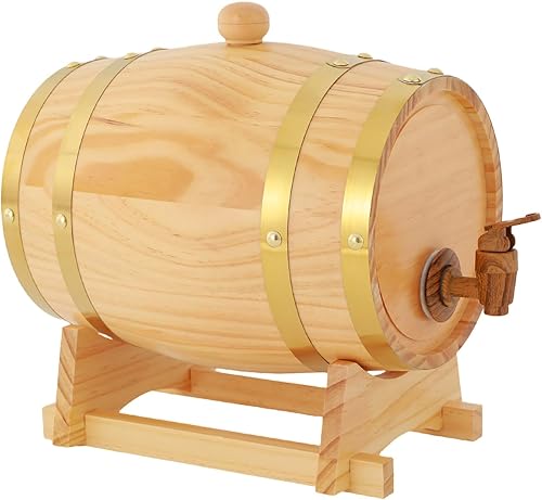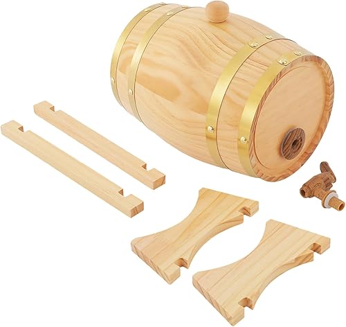 Wulimasun Tonneau en Bois,Fût en Bois Massif avec Robinet Fût à Whisky Seau de Jardin Seau à Vin avec Support Tonneau à vin en Chêne,pour Stockage,Spiritueux,Whisky,Rhum (5L)