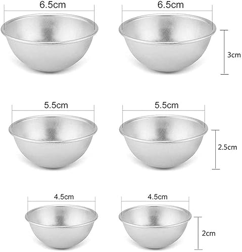 BSTCAR Lot de 6 moules demi-sphères en aluminium anodisé, Ø 4,5 cm, 5,5 cm, 6,5 cm, argent