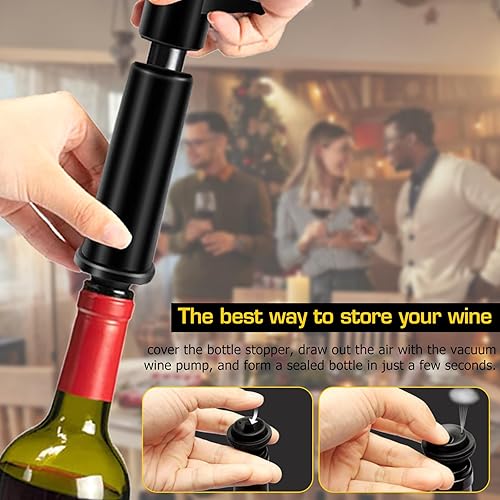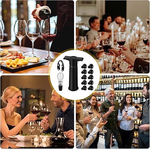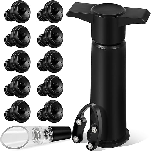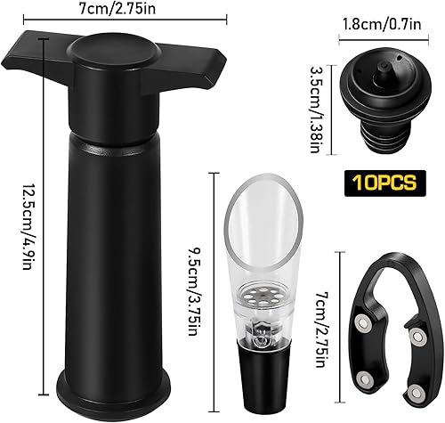Kit de pompe à Vin PRITOK - Pompe à vin sous vide avec 10 bouchons réutilisables, 1 bec verseur à vin, 1 coupe-vin en aluminium, bouchon de bouteille de vin, convient pour vin, champagne, etc., noir