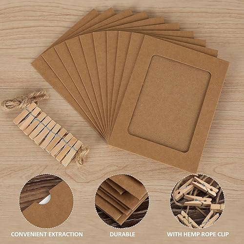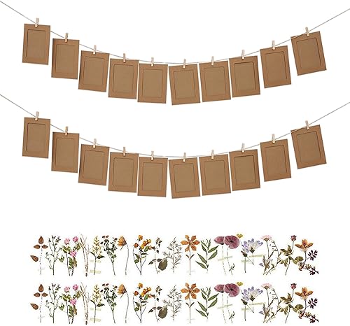 ZBHDEYG Ensemble de 42 cadres photo en papier, 40 autocollants floraux, cadre photo avec clip de ficelle, cadre photo en papier à suspendre, mur d'album photo, cadre d'album photo en papier kraft
