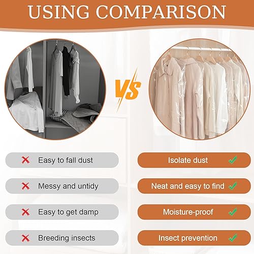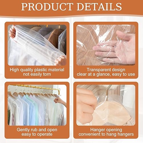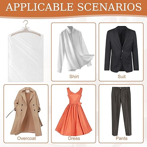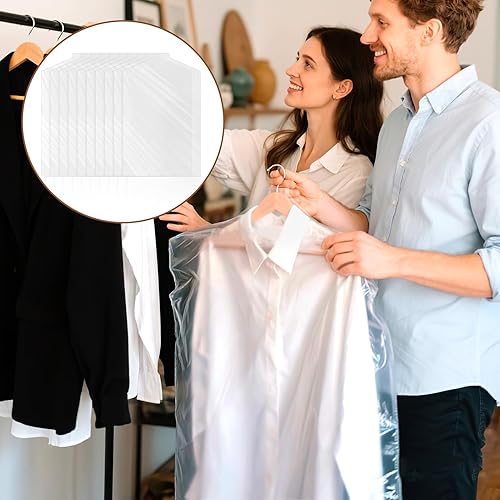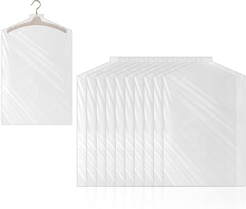 10 Pièces Housses de Vêtements Plastique 60x90cm, Protège-Vêtements à Suspendre Transparent Housse Vetement Penderie Anti-Poussière Imperméable pour Costume Manteau Blazers Chemises Robes