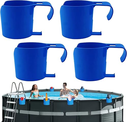 4 Pièces Porte Gobelet Piscine, Accessoire Piscine Hors Sol pour Barre De 5cm, Plateau Anti-Déversement Suspendu Au Bord De La Piscines pour Canettes Bouteilles Lunettes De Soleil