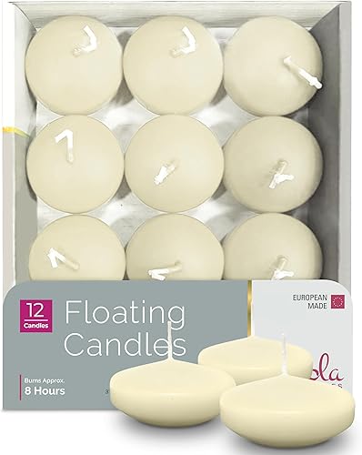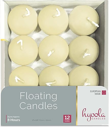 Hyoola Lot de 12 Bougies Flottantes Premium Ivoire - Bougies Flottantes Longue Durée 8 heures - Petites Bougies Flottantes de 75 mm - Fabriquées en Europe