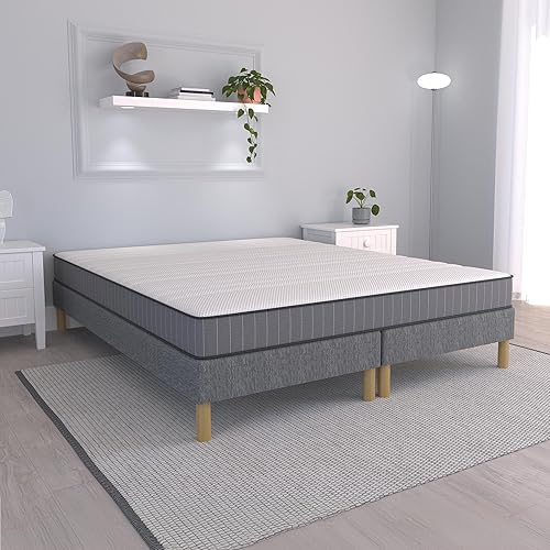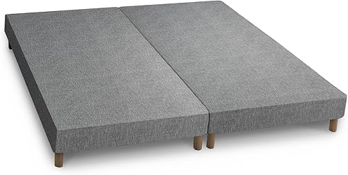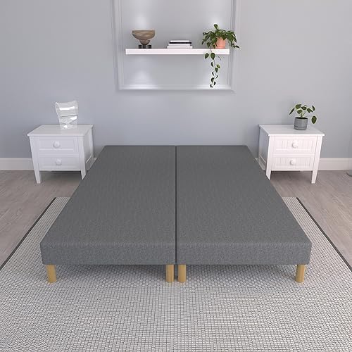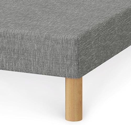 Mobilier-Deco Spring - Sommier tapissier Tissu Gris piètement en Bois 2X 90x200 cm
