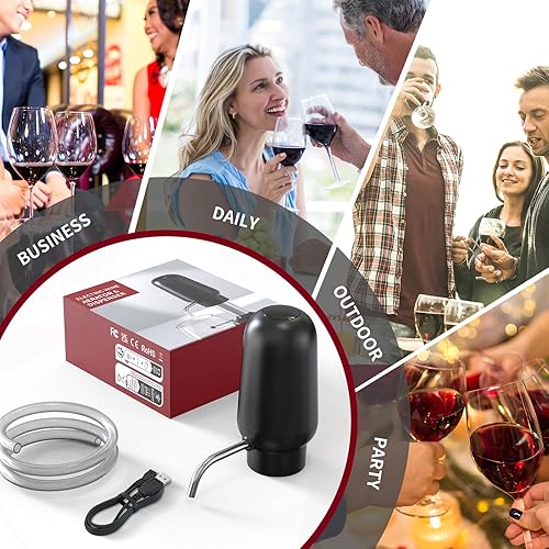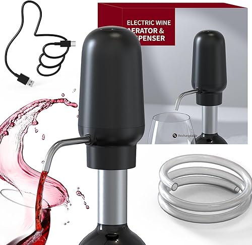 CIRCLE JOY Aérateur de Vin Électrique Verseur Rechargeable 2-en-1 Automatique Décanteur de Vin, Distributeur de Vin, Cadeaux pour Les Amateurs de Vin, Noir