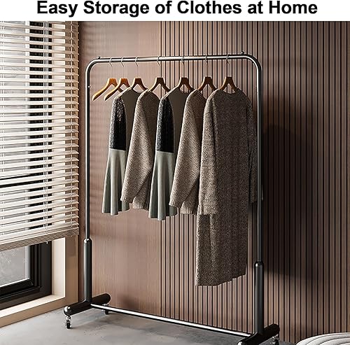 Portant Vetement Solide, Penderie Avec Roulettes, Porte Manteaux, Portant À Vêtements En Métal Sur Pied, Portant À Vêtements À Tige Avec Roulettes, Pour Dressing Salon Chambre(Black,150x165x40cm)