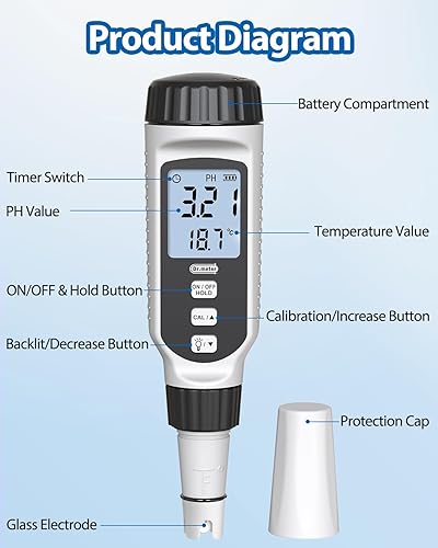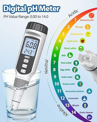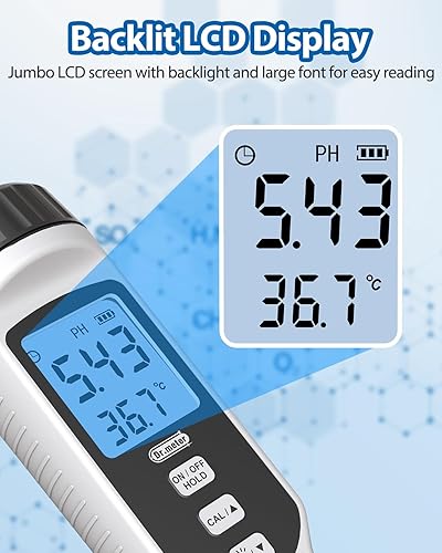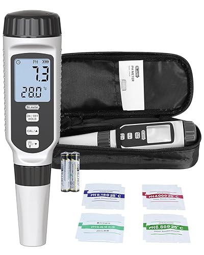 PH mètre,Dr.meter Mesureur de pH 0.01 Haute résolution et Haute précision avec écran LCD rétro-éclairé Bicolore, Portée de Mesure 0-14pH avec Fonction de Conservation des données