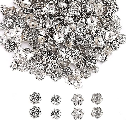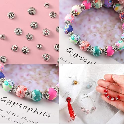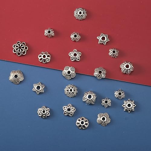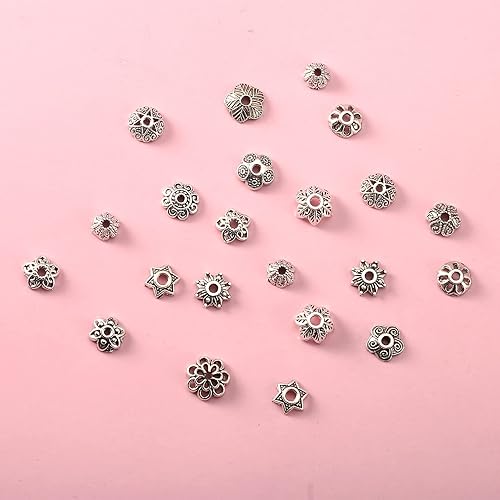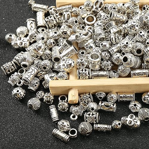 HERZWILD 200g Perles Intercalaires Rondelle Argent Antique Tibetains Perles Espaces Separateur Rondes en Métal Perles d’Espacement Argentees Mixte pour Création de DIY Bijoux Breloque Collier Bracelet