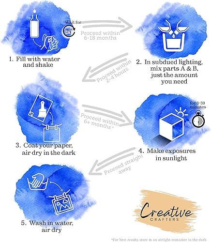 Kit Cyanotype pour Papier d'Impression Solaire de Creative Crafters - Kit d'Art avec Pinceaux en Mousse et Papier d'Artiste Fait à la Main - Pour Adultes