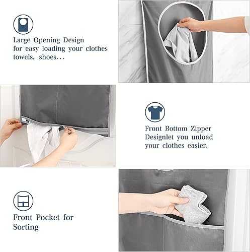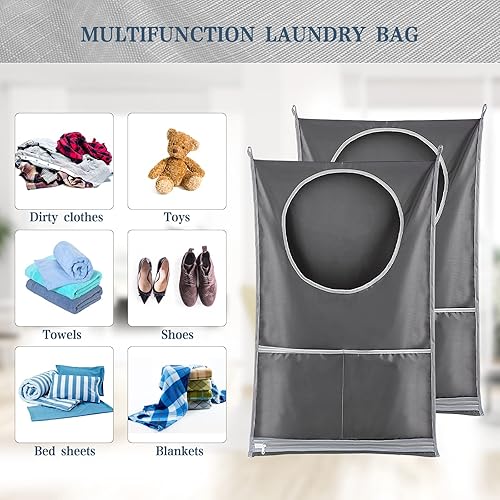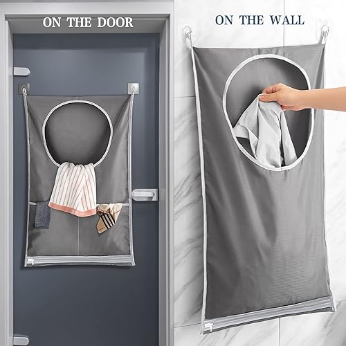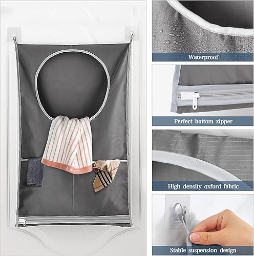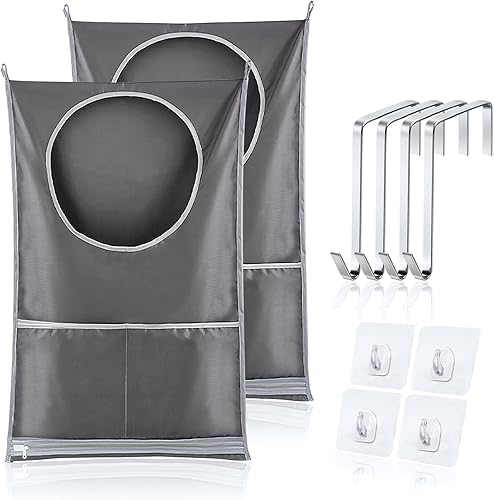 flintronic 2PCS Sac à Linge Pendaison, Panier à Linge Suspendu Sac de Rangement avec 2 Crochets de Porte en Acier Inoxydable et 4 Crochets d'aspiration, pour Placard Dortoir Salle de Bain