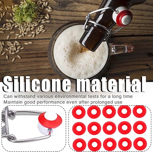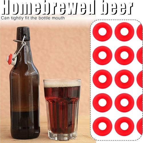 Grolsch Joint en Silicone Rouge pour Bouteilles de Brassage à Domicile 25pcs Bière Soda Mason Jar Usage Général Résistant aux Hautes Températures Non Toxique Joint Anti fuite