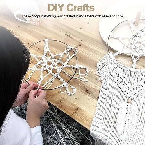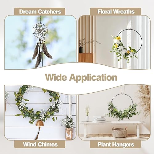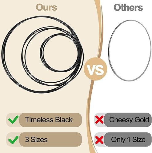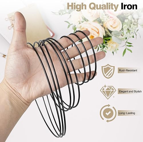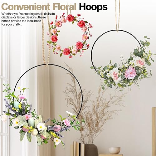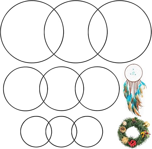 9Pcs Anneaux en Métal de Fleurs Noires Décoratives, 10cm/15cm/20cm Cercle en Métal de Macramé Murales, Anneaux de Attrape-Rêves Suspendues pour Décoration de Fête Mariage Couronne