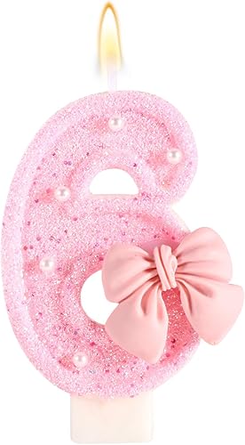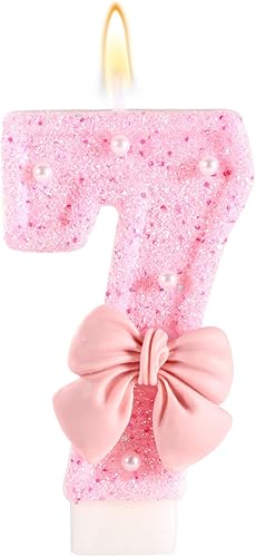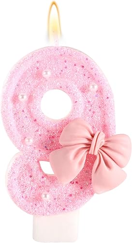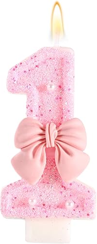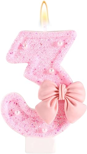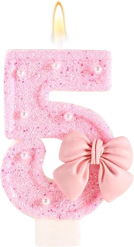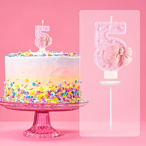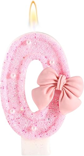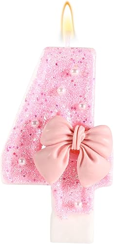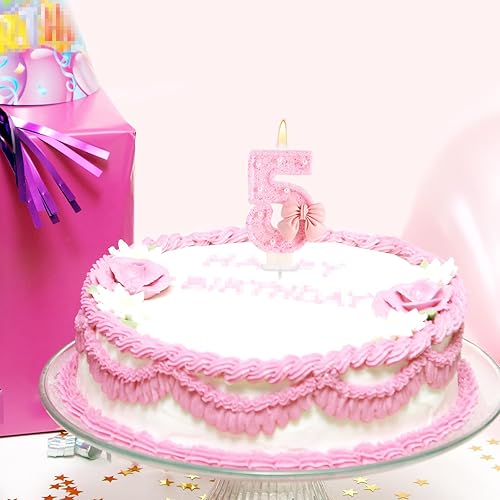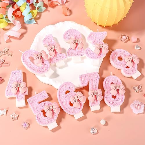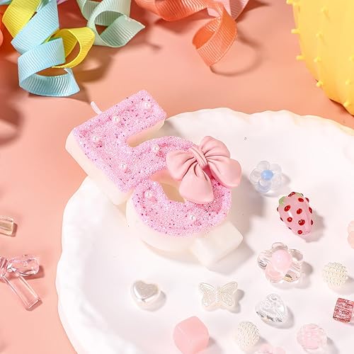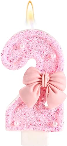 Bougie d'Anniversaire Rose avec Noud, Paillettes Brillantes Perles Bougies Forme Chiffre Joyeux Anniversaire Décorations Gâteaux Parfaites pour Fête Mariage Remise Diplôme(Numéro 2)