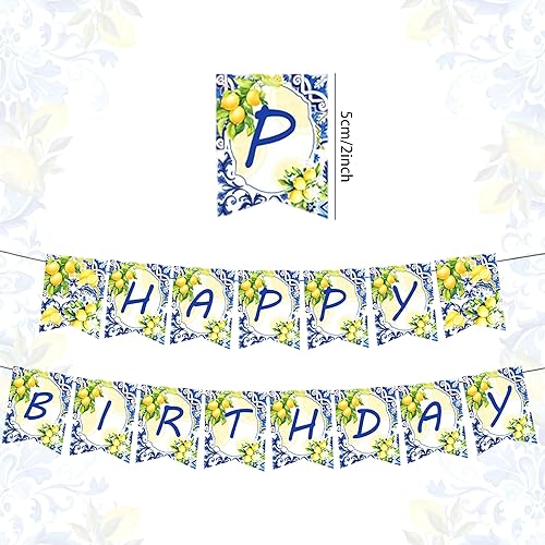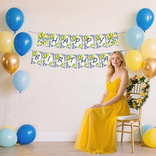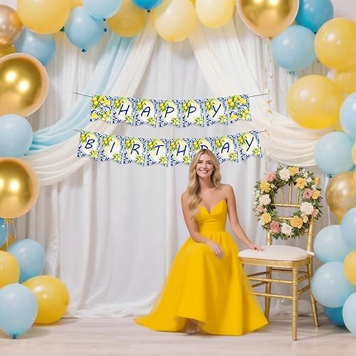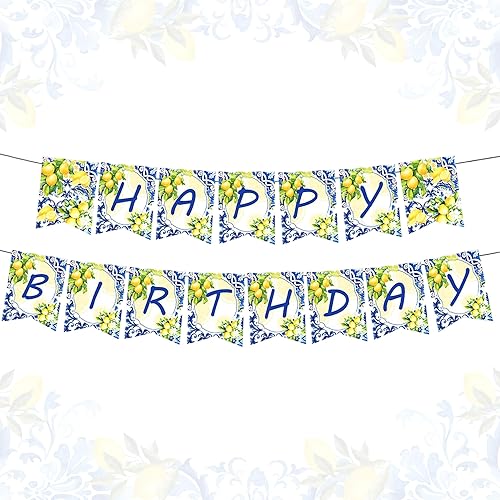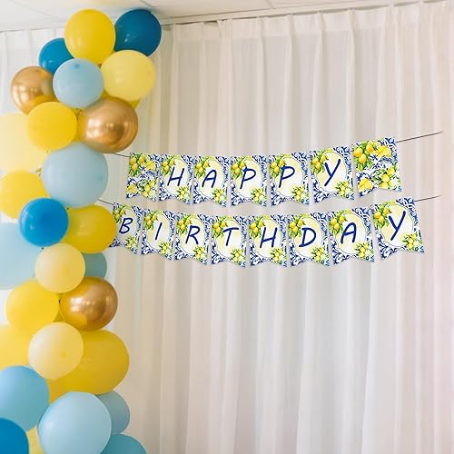 LaVenty décorations d'anniversaire en tuiles bleues et citrons bannière bleu citron guirlande de citronnade pour fête d'anniversaire sur le thème du citron