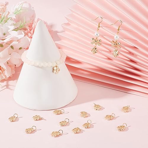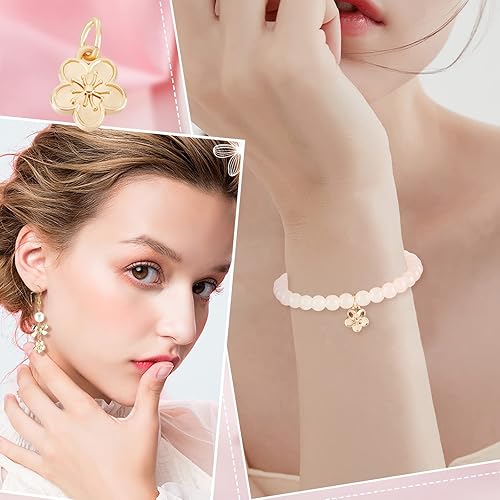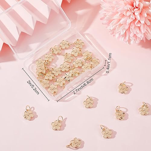 Beebeecraft 1 boîte 40pcs 14K Plaqué Or Fleur Breloques Fleur de Pêcher Pendentifs à Breloque avec Anneaux de Saut pour Bracelet à Bricoler Soi-Même Collier Porte-Clés Fabrication de Bijoux