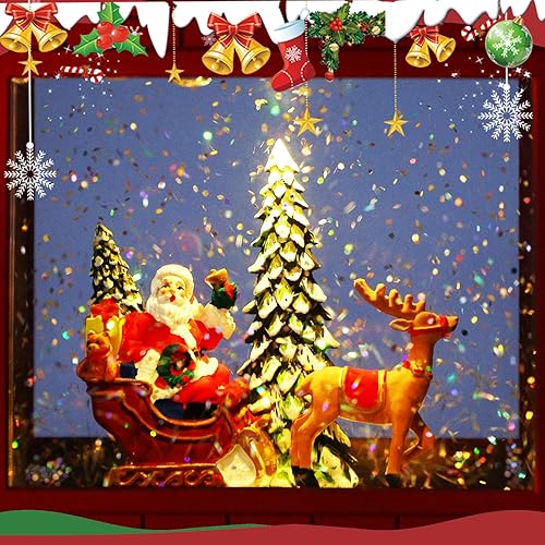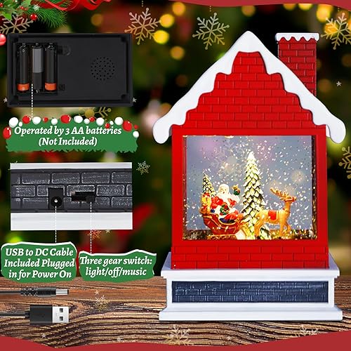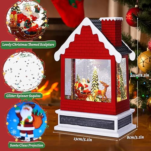 Boule à Neige CestMall - Lanterne Projection Éclairée avec Père Noël, 6 Heures de Fonctionnement USB/Piles, Musique et Décoration pour Ménage