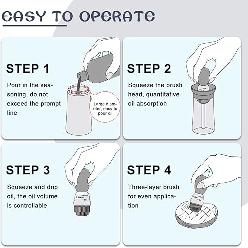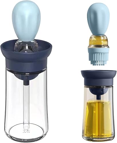 Bouteille d'huile avec pinceau en silicone 2 en 1 - Pinceau à pâtisserie - Brosse de cuisine flexible avec poils en silicone - Pour barbecue, barbecue, cuisine - Sans BPA - Passe au lave-vaisselle