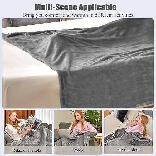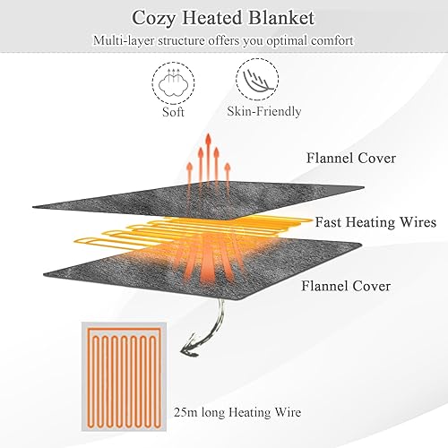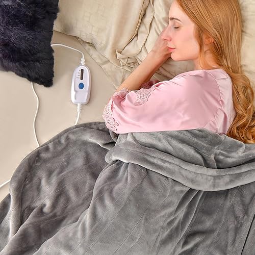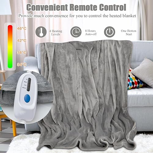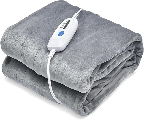 HOMASIS Couverture Electrique Thermique Chauffante avec 4 Niveaux de Chaleur, Surmatelas Chauffant Minuterie de 8 H, Protection contre la Surchauffe, Télécommande, Lavable en Machine, 130x180cm