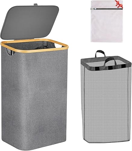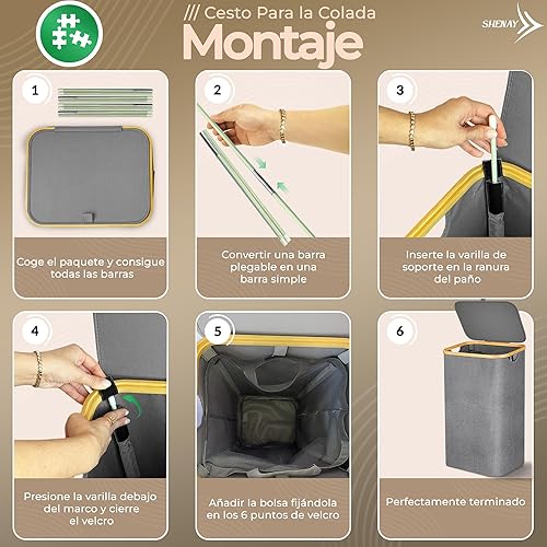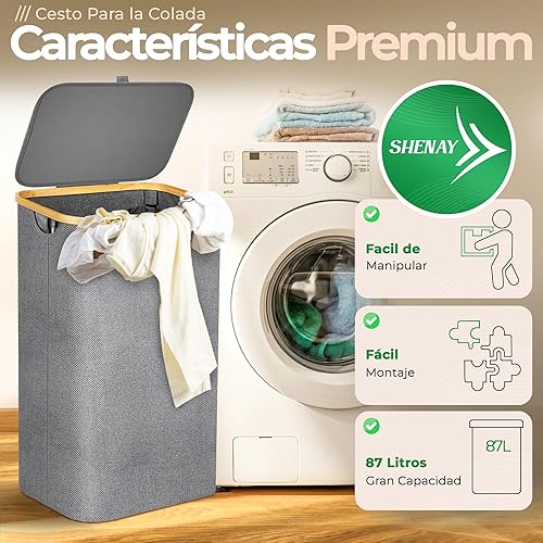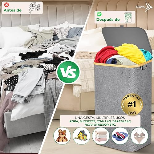 SHENAY Panier à linge avec couvercle 87 l, Oxford 600D imperméable, avec sac amovible + filet à linge 30 x 40 cm et guide avec 50 astuces de lavage | Panier à linge sale pliable, rangement de jouets
