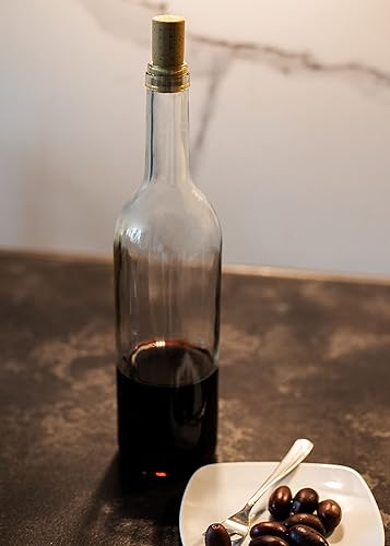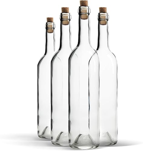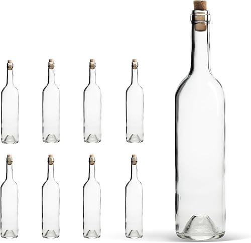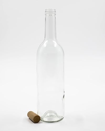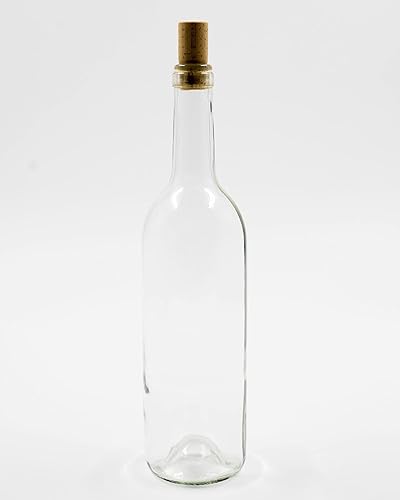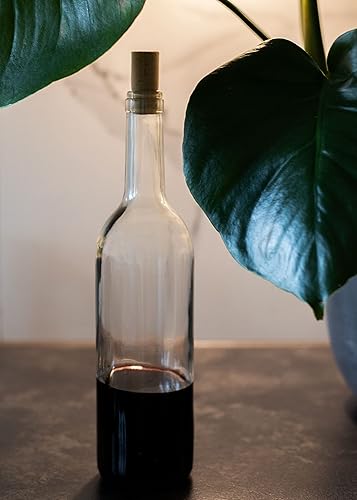 WYSKONT Bordeaux, type bordeaux, bouteille de vin vide, avec bouchon, pour brassage, rangement de boissons, décoration de service, en verre transparent, 0,75 l, capacité 7,4 x 29,3 cm