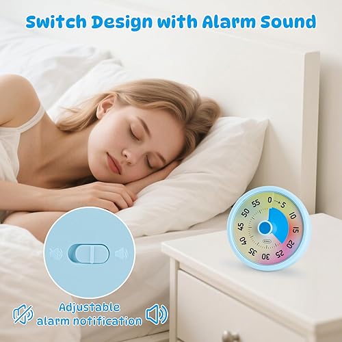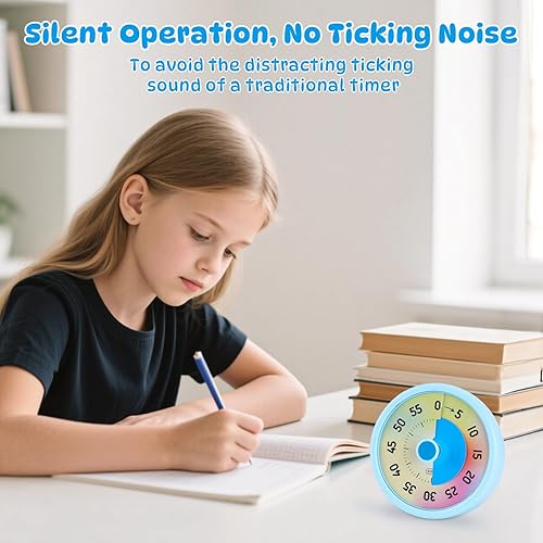 Euqvunn Minuteur Visuel Enfant, 60 Minutes Visual Timer pour Enfants et Adultes, Minuteur Visuel Timer Enfant avec Fonction Silencieuse pour Cuisine École Bureau, Arc-en-Ciel