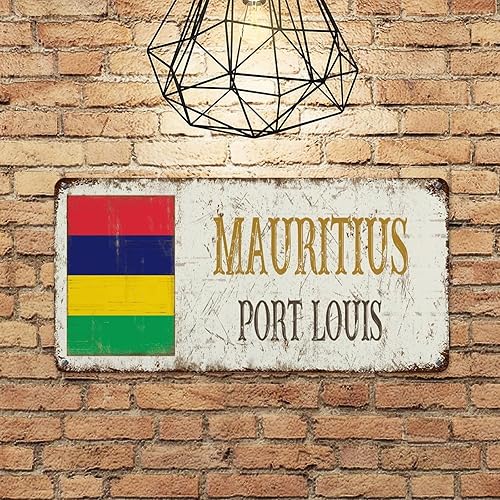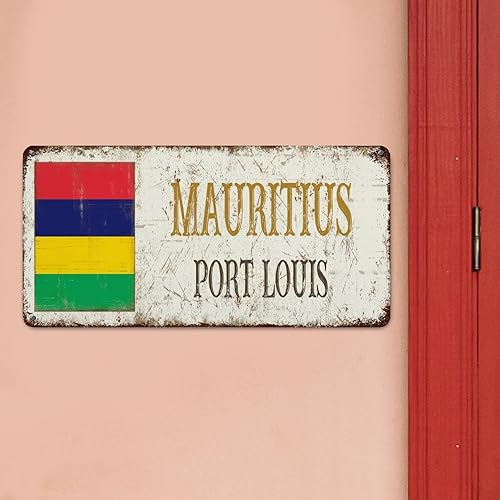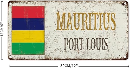 WoGuangis Plaque murale en métal représentant l'île Maurice avec peinture en fer Port Louis City - 30,5 x 15,2 cm