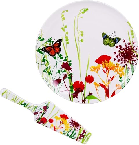 Tutti Fiori Plat à Tarte et Pelle en Porcelaine, Blanc, 30cm